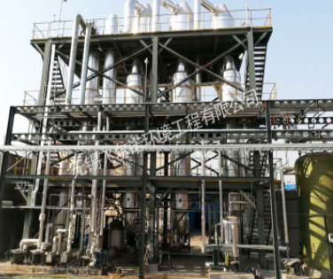 一效、二效、三效強制循環(huán)蒸發(fā)器之間通過平衡管相通,在負壓的作用下,高含鹽廢水由一效向二效、三效依次流動,廢水不斷地被蒸發(fā),廢水中鹽的濃度越來越高,當(dāng)廢水中的鹽分大于飽和狀態(tài)時,水中鹽分就會不斷地析出,進入蒸發(fā)結(jié)晶室的下部的集鹽室。